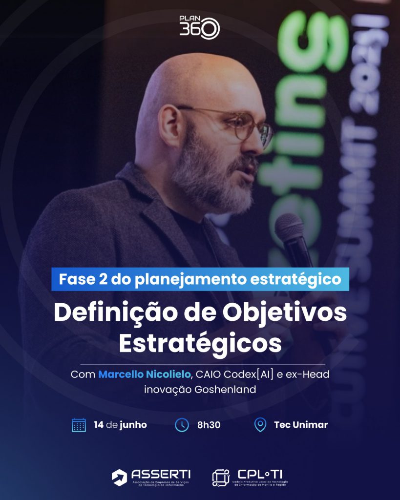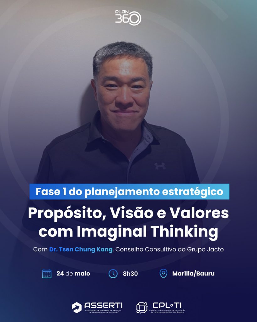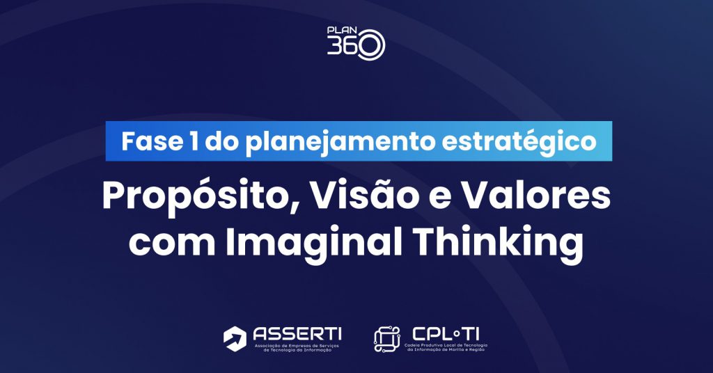 No Encontro da Fase 1 do Planejamento Estratégico: Propósito, Visão e Valores com Imaginal Thinking do programa Plan360, promovido pela ASSERTI, entidade gestora da Cadeia Produtiva Local de Tecnologia da Informação de Marília e região, vamos mergulhar nos fundamentos que sustentam a identidade organizacional e impulsionam a inovação contínua.