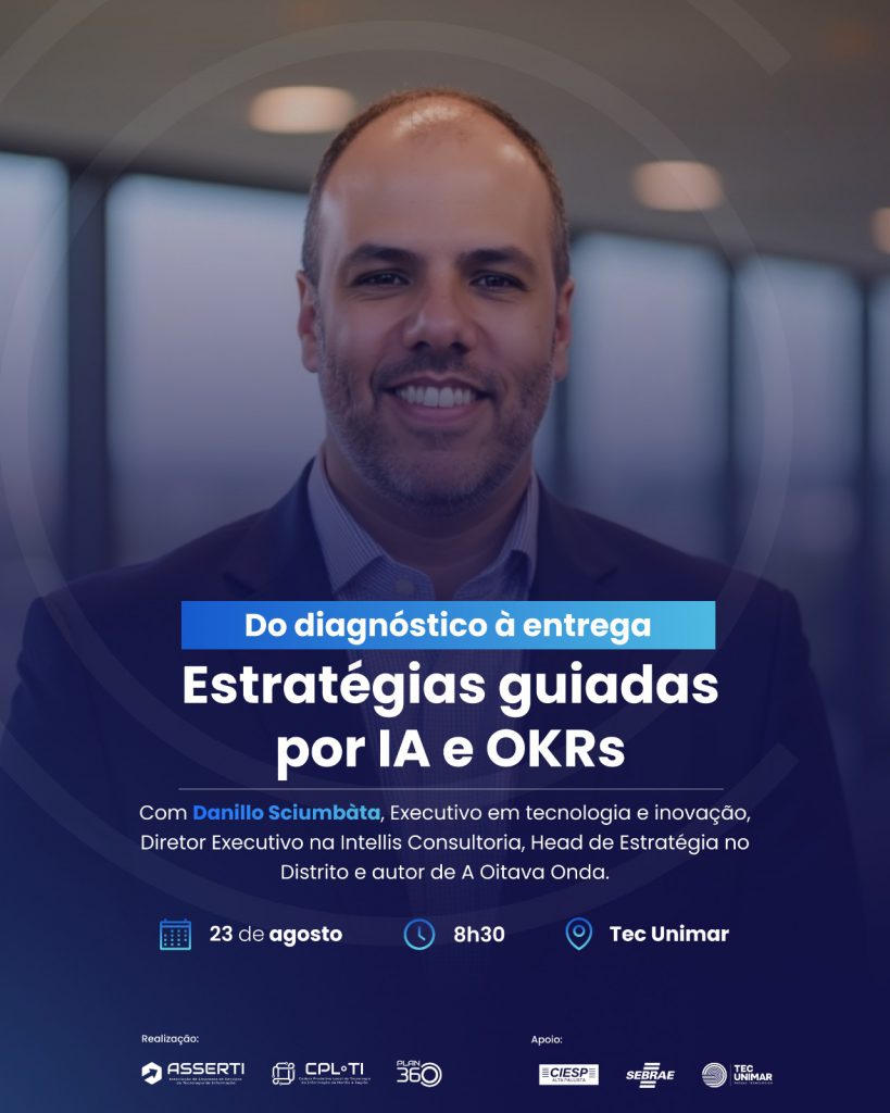 No dia 23 de agosto, empreendedores, gestores e profissionais terão acesso a um encontro exclusivo e 100% prático sobre Adoção Estratégica de Inteligência Artificial e OKRs (Objectives and Key Results) — metodologia reconhecida internacionalmente por transformar estratégias em resultados concretos e mensuráveis.